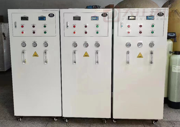 ③系统具备双路水质检测显示功能,可同时检测和显示: RO纯水电导率(μs/cm),UP超纯水的电阻率(MΩ•cm)。