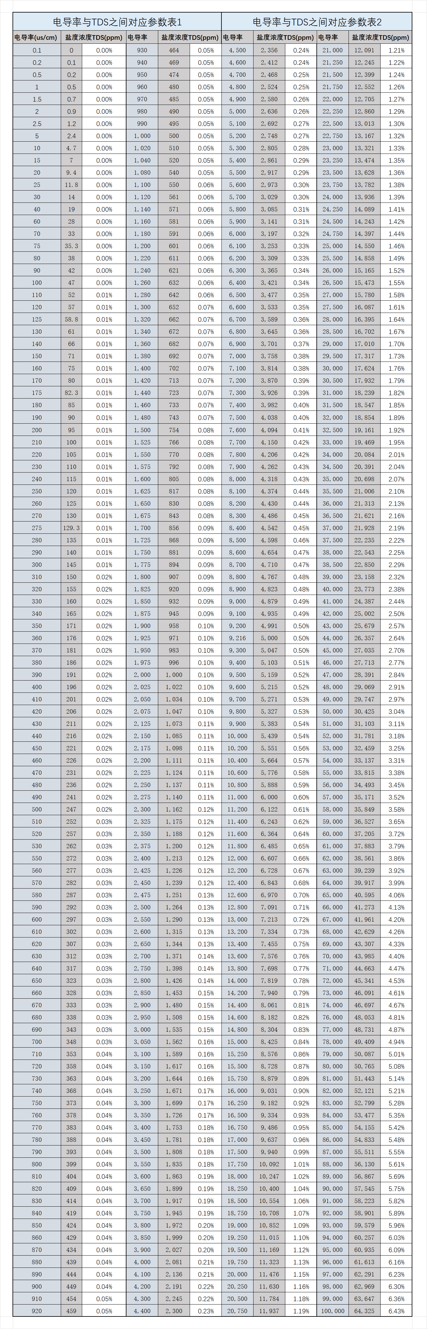 电导率与含盐量的换算关系表格