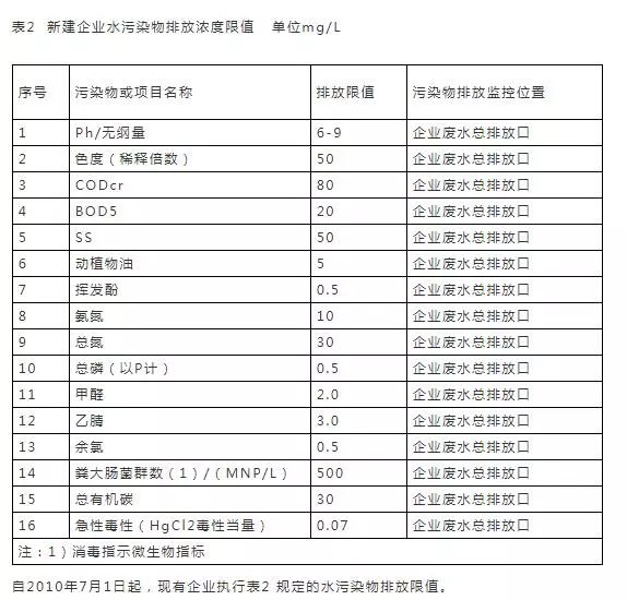 表2:综合医疗机构和其他医疗机构水污染物排放限值(日均值)